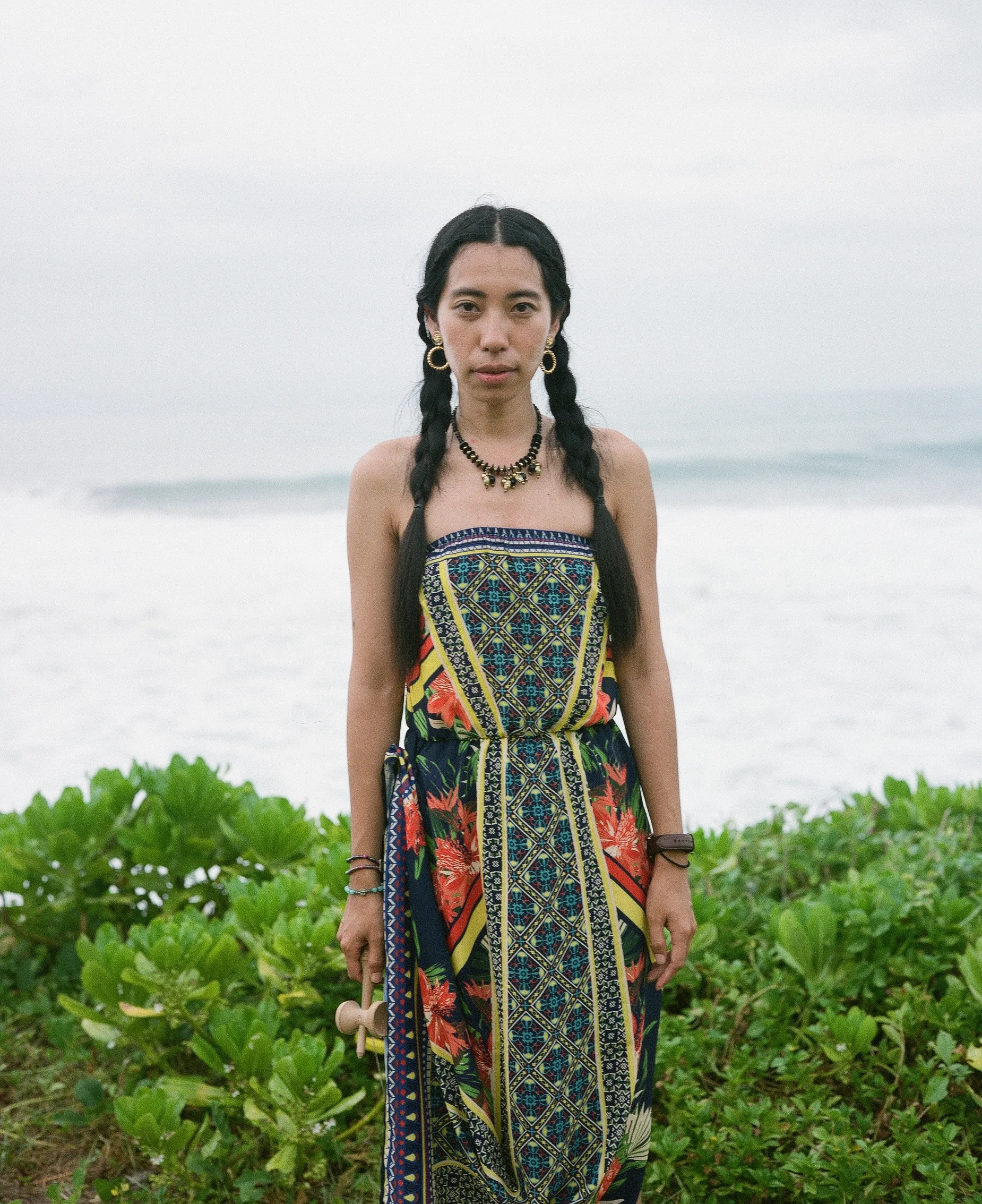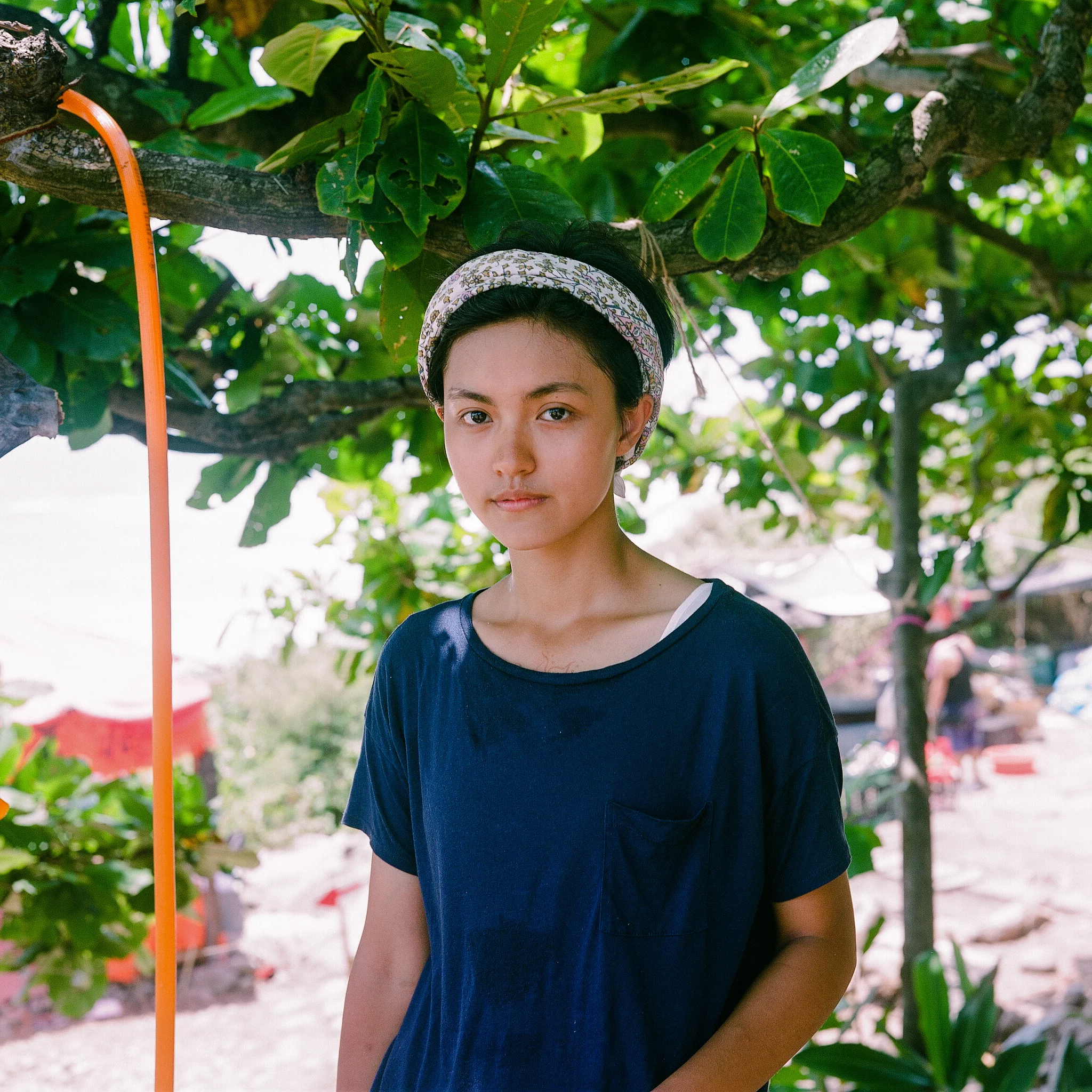 台風が一番近づいた7月9日。一日中雲に覆われ、強い風が吹き、大きな白波がつぎつぎと海岸線に押し寄せて来た日。祭りに遊びに来ていたAfraという名前の女性。崖の上で海を眺める姿、表情、身につけている衣服がとても素敵だったので写真を撮らせてもらった。強すぎる日差しで露出に泣かされたけれど、この日は曇りだったおかげでなんとか適正露出で撮影できた一枚。